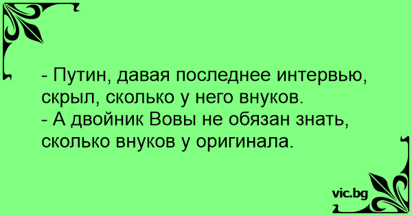 - А двойник Вовы не обязан знать, сколько внуков у оригинала.