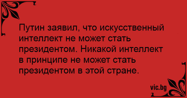 Путин заявил, что искусственный интеллект не может стать президентом. Никакой интеллект в принципе не может стать президентом в этой стране.