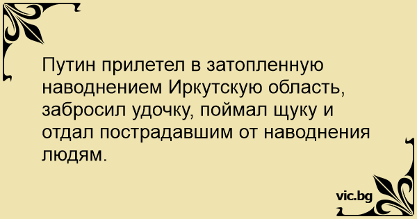 Путин прилетел в затопленную наводнением Иркутскую область, забросил удочку, поймал щуку и отдал пострадавшим от наводнения людям.