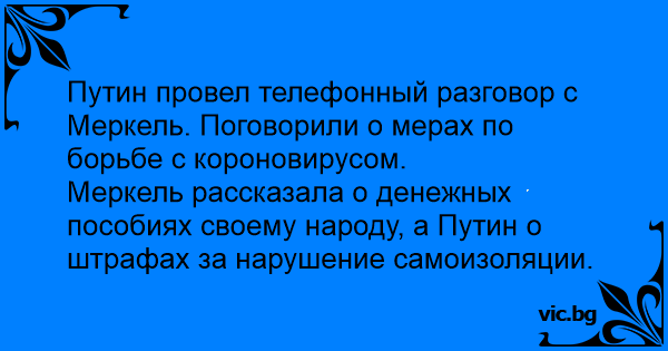 Меркель рассказала о денежных пособиях своему народу, а Путин о штрафах за нарушение самоизоляции.