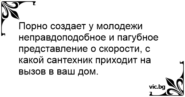 Пoрно создает у молодежи неправдоподобное и пагубное представление о скорости, с какой сантехник приходит на вызов в ваш дом.