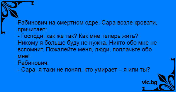 - Сара, я таки не понял, кто умирает – я или ты?