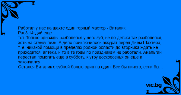 Работал у нас на шахте один горный мастер - Виталик.