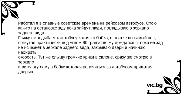 и вижу эту самую бабку которая волочиться за автобусом прижатая дверью