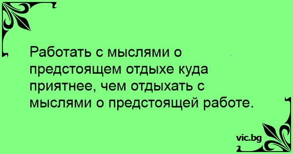 Работать с мыслями о предстоящем отдыхе куда приятнее, чем отдыхать с мыслями о предстоящей работе.