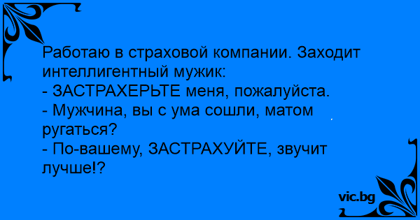 Работаю в страховой компании. Заходит интеллигентный мужик: