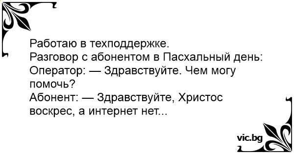 Абонент: — Здравствуйте, Христос воскрес, а интернет нет...