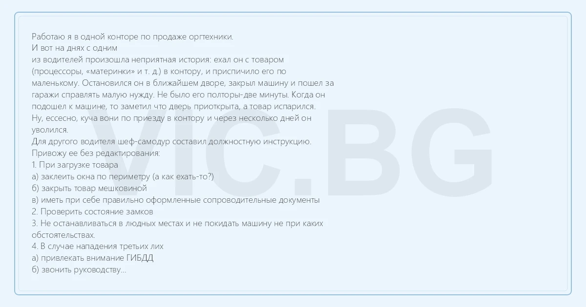 Для другого водителя шеф-самодур составил должностную инструкцию.