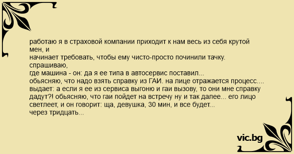 работаю я в страховой компании приходит к нам весь из себя крутой мен, и