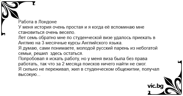 Работа в Лондоне У меня история очень простая и я когда её вспоминаю мне становиться очень весело.