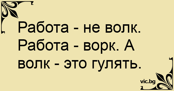 Работа - не волк. Работа - ворк. А волк - это гулять.