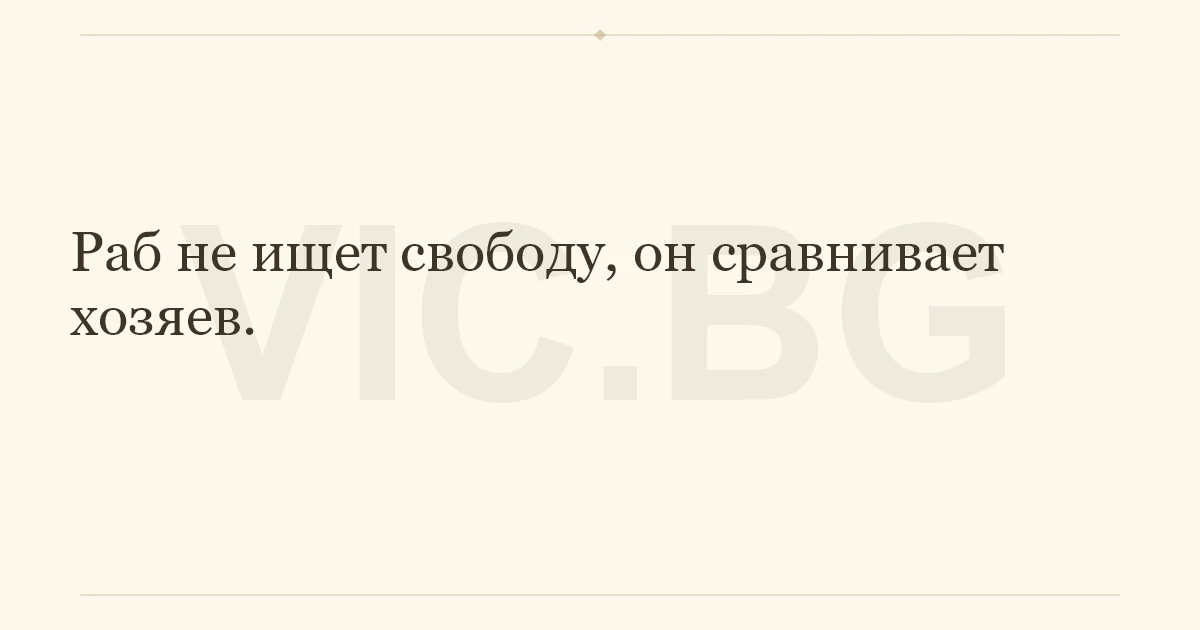 Раб не ищет свободу, он сравнивает хозяев.