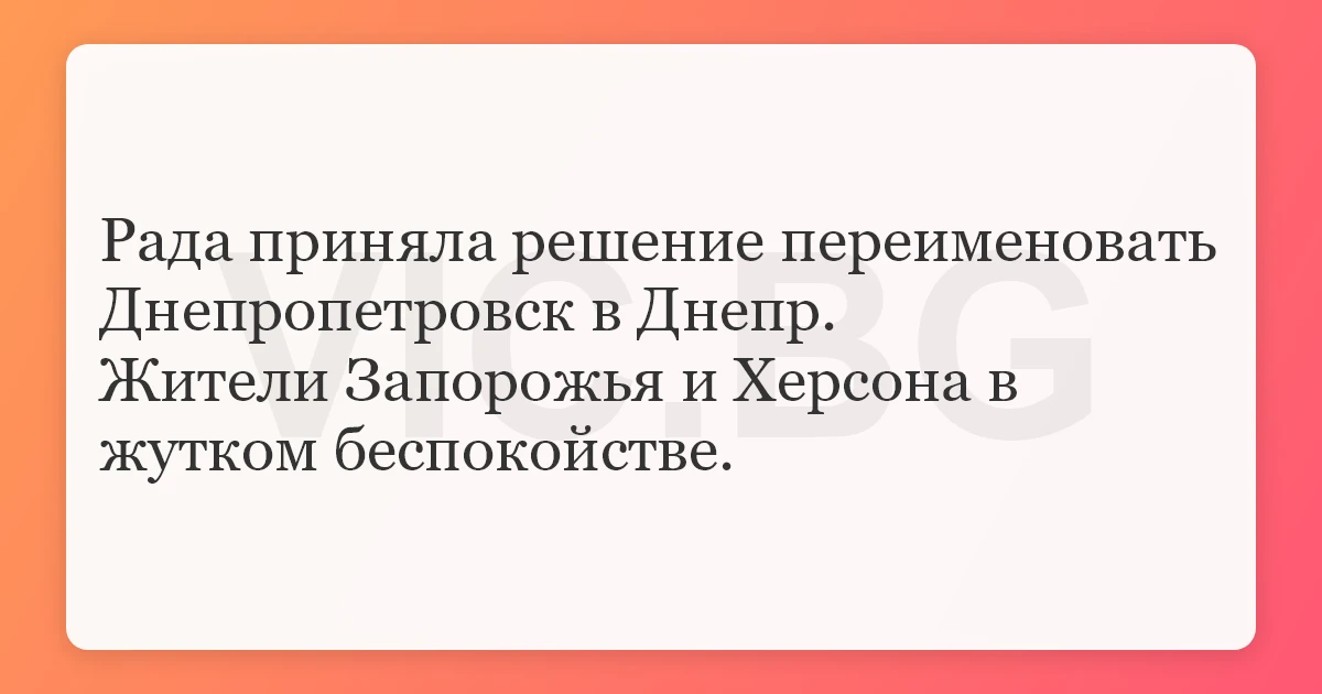 Рада приняла решение переименовать Днепропетровск в Днепр. Жители Запорожья и Херсона в жутком беспокойстве.
