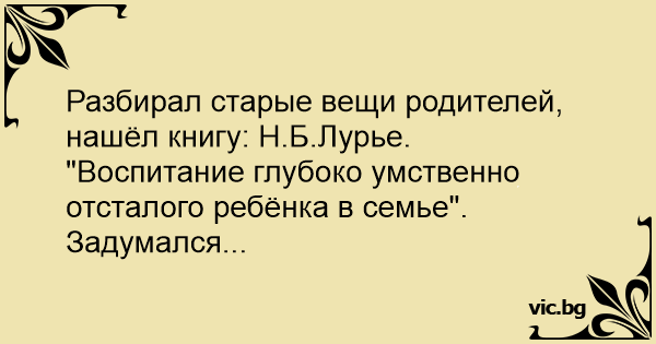 Разбирал старые вещи родителей, нашёл книгу: Н.Б.Лурье. "Воспитание глубоко умственно отсталого ребёнка в семье". Задумался...