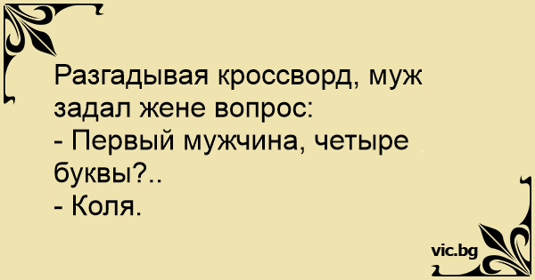 Семејство. Мажот решава крстозбор, жената е во кујната. Тој прашува: