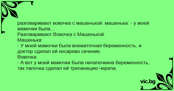 разговаривают вовочка с машенькой: машенька: - у моей мамочки была...