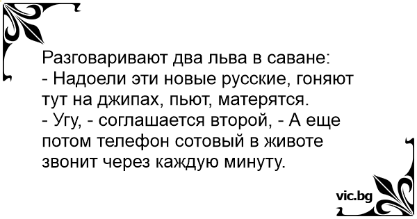 - Hадоели эти новые русские, гоняют тут на джипах, пьют, матерятся.