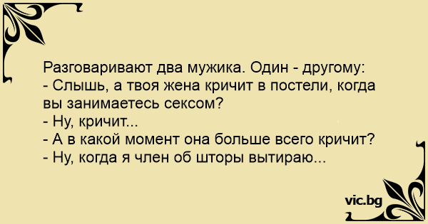 - Слышь, а твоя жена кричит в постели, когда вы занимаетесь сексом?
