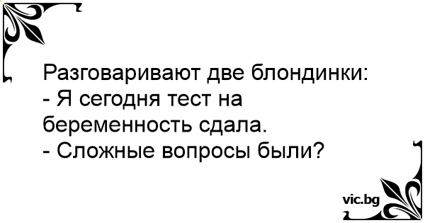 Sarunājas divas blondīnes: - Vakar veicu grūtniecības testu... - Nu un kā - jautājumi bija sarežģīti?
