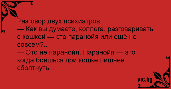 — Как вы думаете, коллега, разговаривать с кошкой — это паранойя или ещё не совсем?..