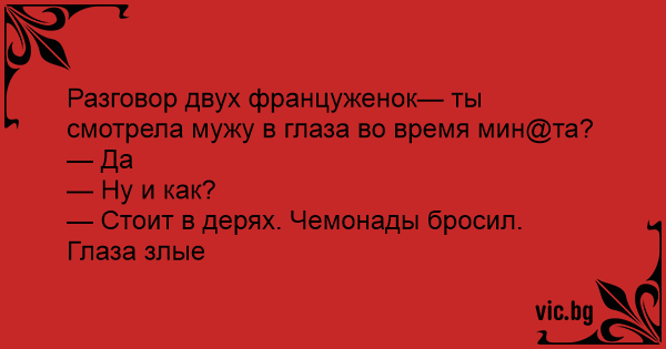 Разговор двух француженок— ты смотрела мужу в глаза во время мин@та?