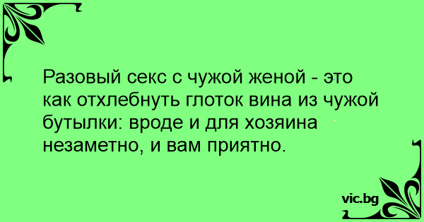 Разовый cekc с чужой женой - это как отхлебнуть глоток вина из чужой бутылки: вроде и для хозяина незаметно, и вам приятно.