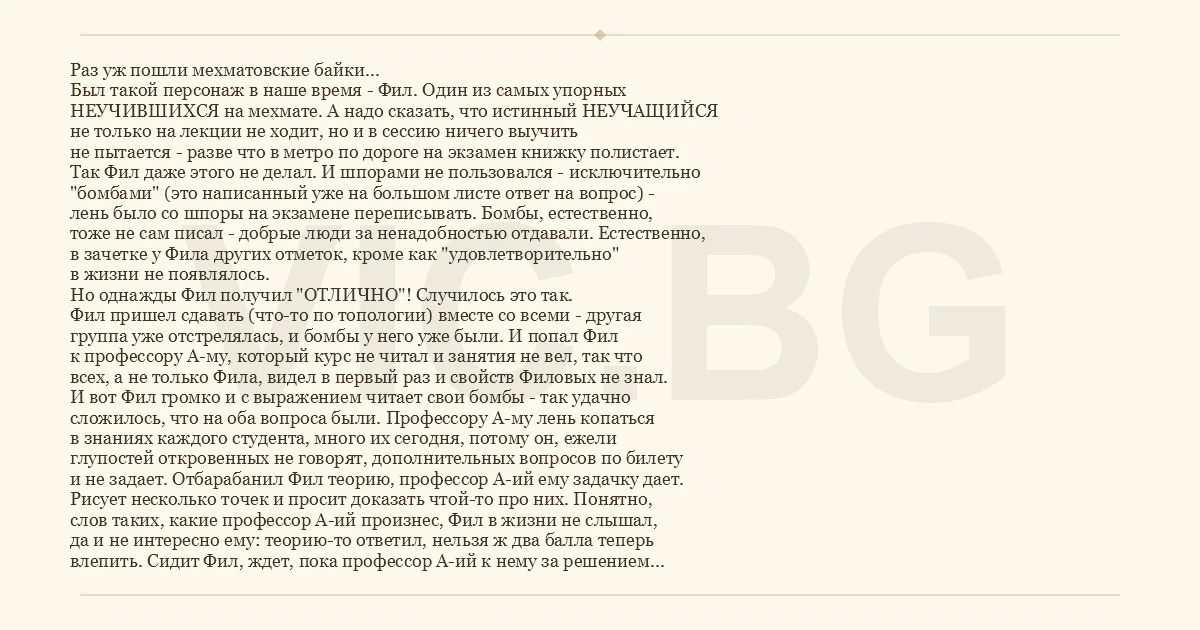 Раз уж пошли мехматовские байки...