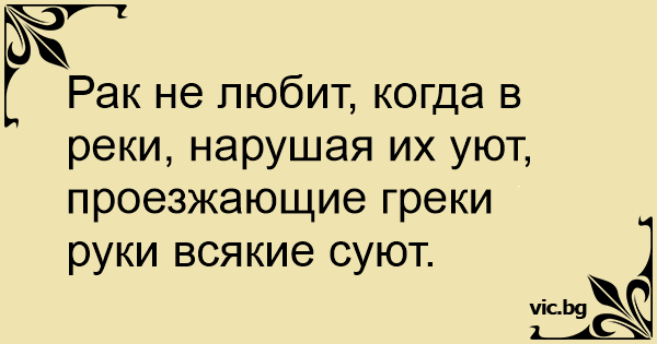 Рак не любит, когда в реки, нарушая их уют, проезжающие греки руки всякие суют.