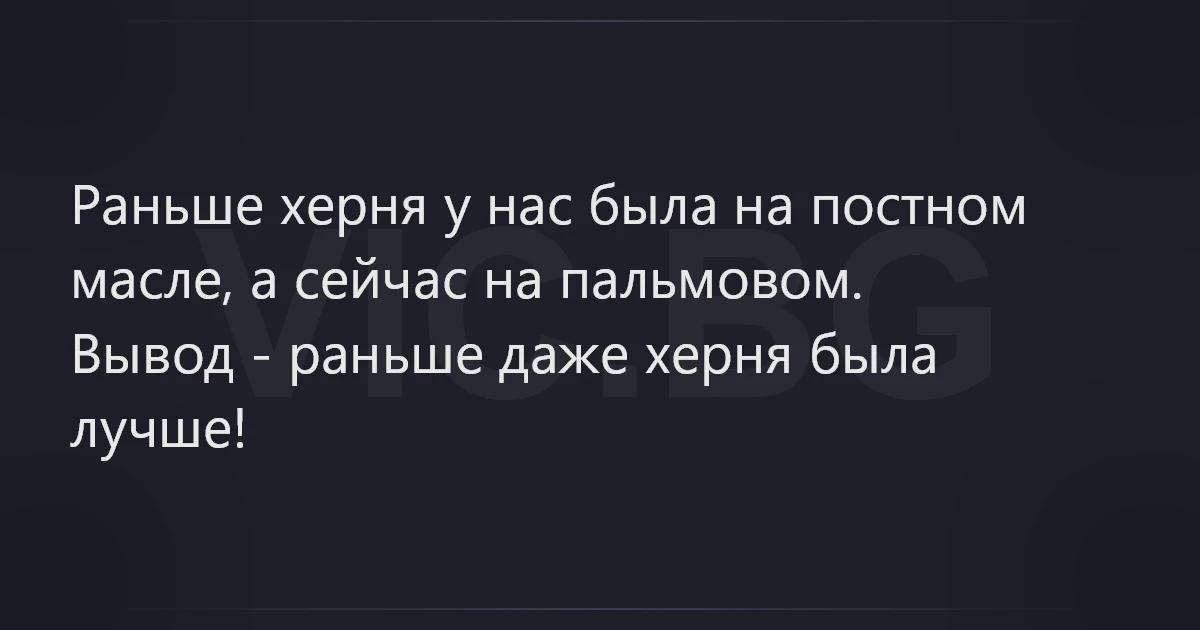 Раньше хepня у нас была на постном масле, а сейчас на пальмовом.<br />Вывод - раньше даже хepня была лучше!
