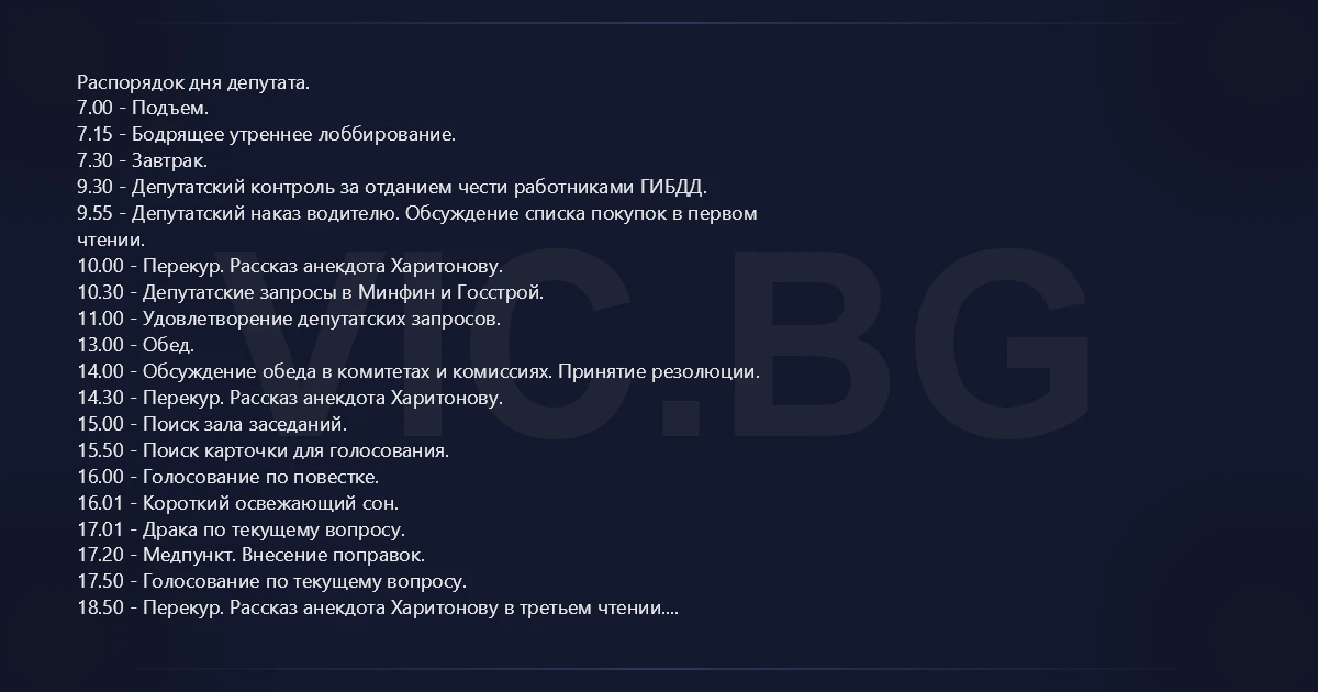 9.55 - Депутатский наказ водителю. Обсуждение списка покупок в первом