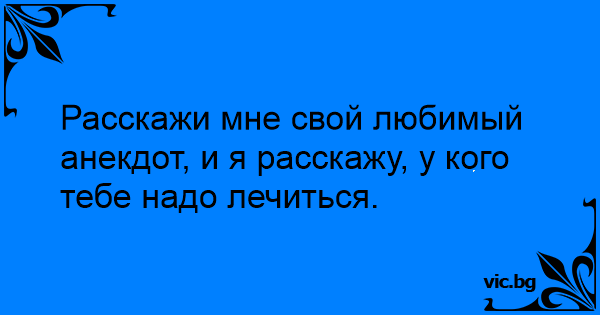 Расскажи мне свой любимый анекдот, и я расскажу, у кого тебе надо лечиться.