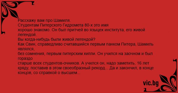 Как Свин, справедливо считавшийся первым панком Питера, Шамиль являлся,