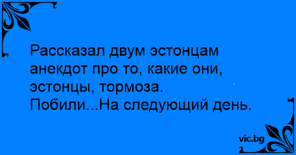 Рассказал двум эстонцам анекдот про то, какие они, эстонцы, тормоза. Побили...На следующий день.