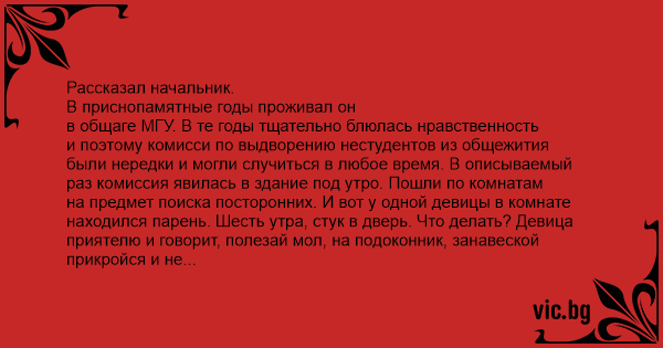 в общаге МГУ. В те годы тщательно блюлась нравственность