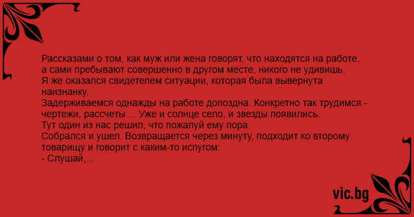 Рассказами о том, как муж или жена говорят, что находятся на работе,