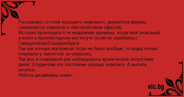 Так вот, в очередной раз наблюдалось хроническое отсутствие денег (студентам это состояние хорошо знакомо). А выпить хочется...