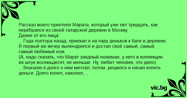 Рассказ моего приятеля Марата, который уже лет тридцать, как перебрался из своей татарской деревни в Москву.