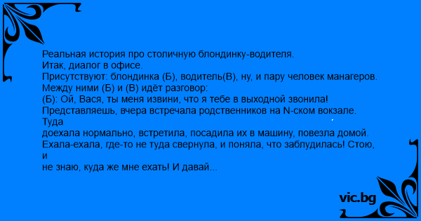 Присутствуют: блондинка (Б), водитель(В), ну, и пару человек манагеров.
