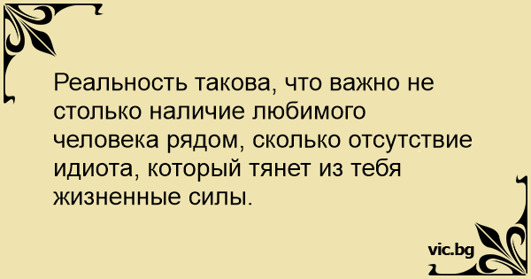 Реальность такова, что важно не столько наличие любимого человека рядом, сколько отсутствие идиота, который тянет из тебя жизненные силы.