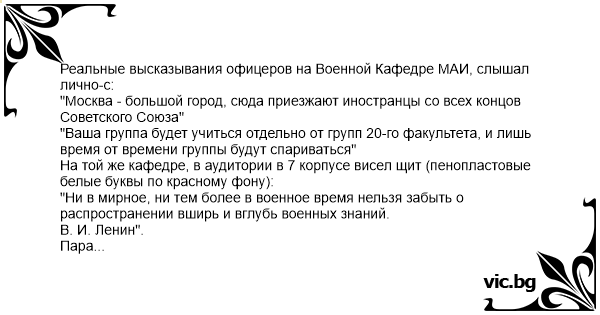 Реальные высказывания офицеров на Военной Кафедре МАИ, слышал лично-с: