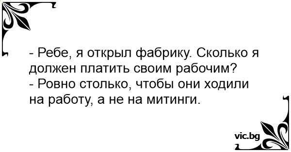 - Ребе, я открыл фабрику. Сколько я должен платить своим рабочим?