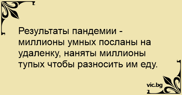 Результаты пандемии - миллионы умных посланы на удаленку, наняты миллионы тупых чтобы разносить им еду.