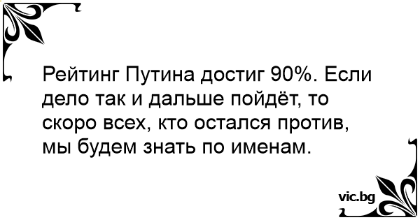 Рейтинг Путина достиг 90%. Если дело так и дальше пойдёт, то скоро всех, кто остался против, мы будем знать по именам.
