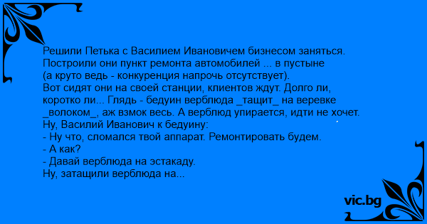 Решили Петька с Василием Ивановичем бизнесом заняться.