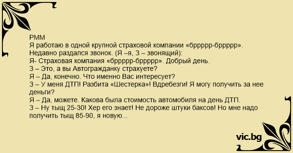 РММ Я работаю в одной крупной страховой компании «бррррр-бррррр».