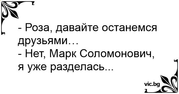 - Танечка, давайте останемся друзьями! - Нет, Боря, я уже раз делась...