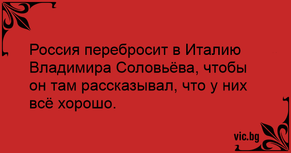 Россия перебросит в Италию Владимира Соловьёва, чтобы он там рассказывал, что у них всё хорошо.