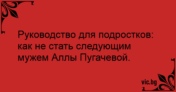 Руководство для подростков: как не стать следующим мужем Аллы Пугачевой.