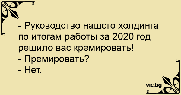 - Руководство нашего холдинга по итогам работы за 2020 год решило вас кремировать!