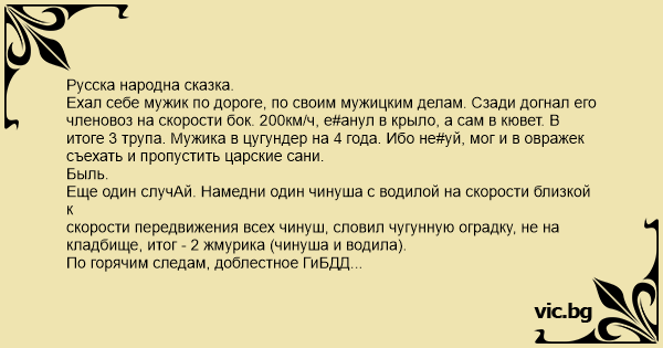 Ехал себе мужик по дороге, по своим мужицким делам. Сзади догнал его